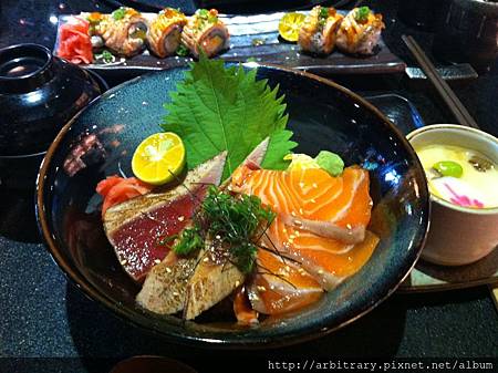 我們兩個人各點了一份套餐-- 鮪魚雙色丼 & 夢幻鰻魚丼 照片看起來是不是很吸引人!!