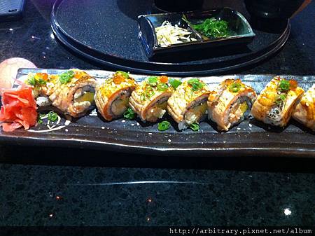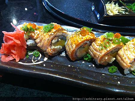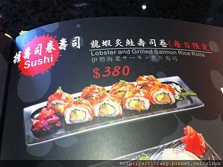 然後兩個大食量的小鬼怕吃不飽又加點了一份龍蝦炙鮭壽司卷