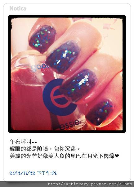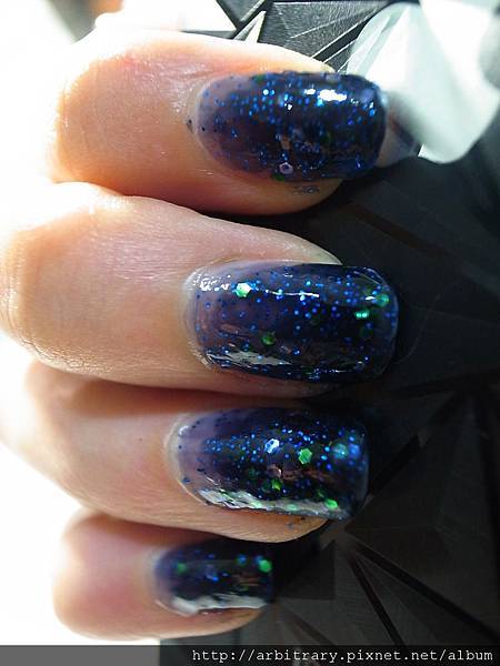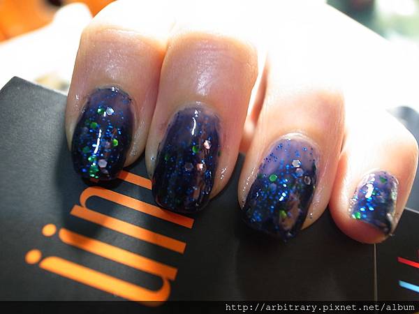 午夜呼叫則是非常漂亮的深藍紫色加超多大大小小亮片,看官網圖就知道有多美了吧!!怎麼能不買!!