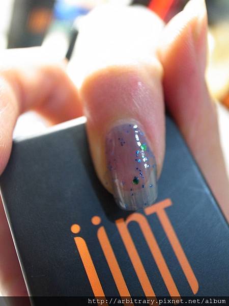 這瓶單擦一層看得出來淡淡的藍紫色跟同色的亮粉加上閃爍的大亮片!!