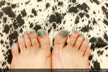 擦在腳上平常遠看是像這樣的感覺,這綠色還蠻顯白的唷~