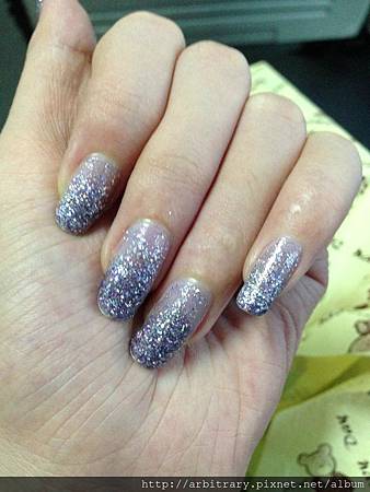 一樣的擦法但是漸層感也比較不明顯,只看到指尖滿滿滿滿的亮粉啊。...