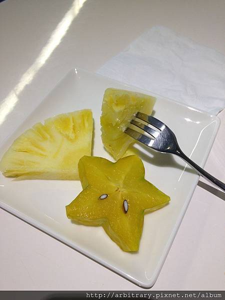 這是早餐附的水果,鳳梨好酸。(皺眉)