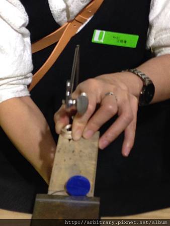 再來是老師示範選擇密合式戒指的同學,要把銀條多餘的部份做切割。