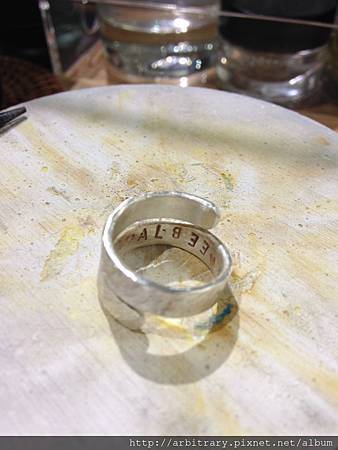敲好之後就翻過來背面,也就是戒指的裡面,準備刻字啦!!