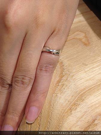 然後中間他做了一個扭結,所以把戒指轉正面就變成經典秀氣款。