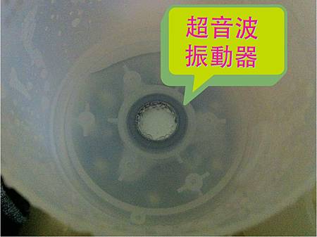 打開上蓋加水的時候會看到中間這個圓圓的, 說明書說他就是超音波振動器啦!!