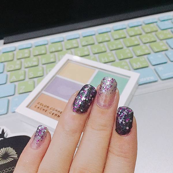把底色換成黑色疊擦又是另外一種感覺,比較個性一點,也是閃亮亮的很美。